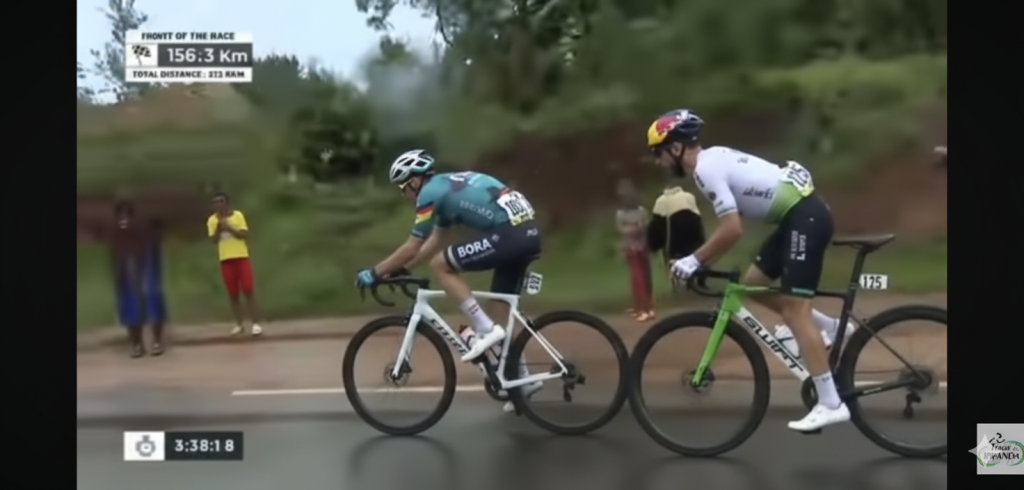 The stage started aggressively, with a two-man breakaway featuring Henrique Avancini (Localiza Meoo / Swift Pro Cycling Team and Miguel Heidemann (Rembe | rad-net Team pushing hard up front. Rain showers between Kayonza District, and Lake Muhazi made the roads slick, adding drama to the stage, but fans lined the route, cheering on riders despite the wet conditions.
